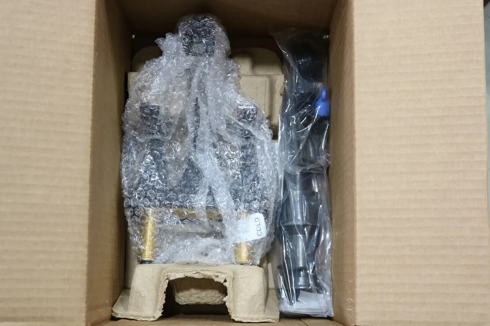 Item is new, complete, and unused. Box may be damaged, or item may be newly repackaged in new box. Blending modern and traditional elements, the Kallan faucet brings a unique, stately look to the bathroom. This centerset faucet reveals an elegant silhouette defined by a slightly flared, high-arch spout and coordinating lever handles. The Kallan collections graceful geometry is easy to clean, and its finish resists corrosion and wear.