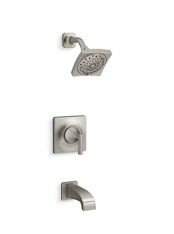 - Box includes: 1.8 gpm showerhead, shower arm and flange, valve trim plate, diverter spout with slip-fit connection, and Rite-Temp® pressure-balancing valve with 1/2" connections
