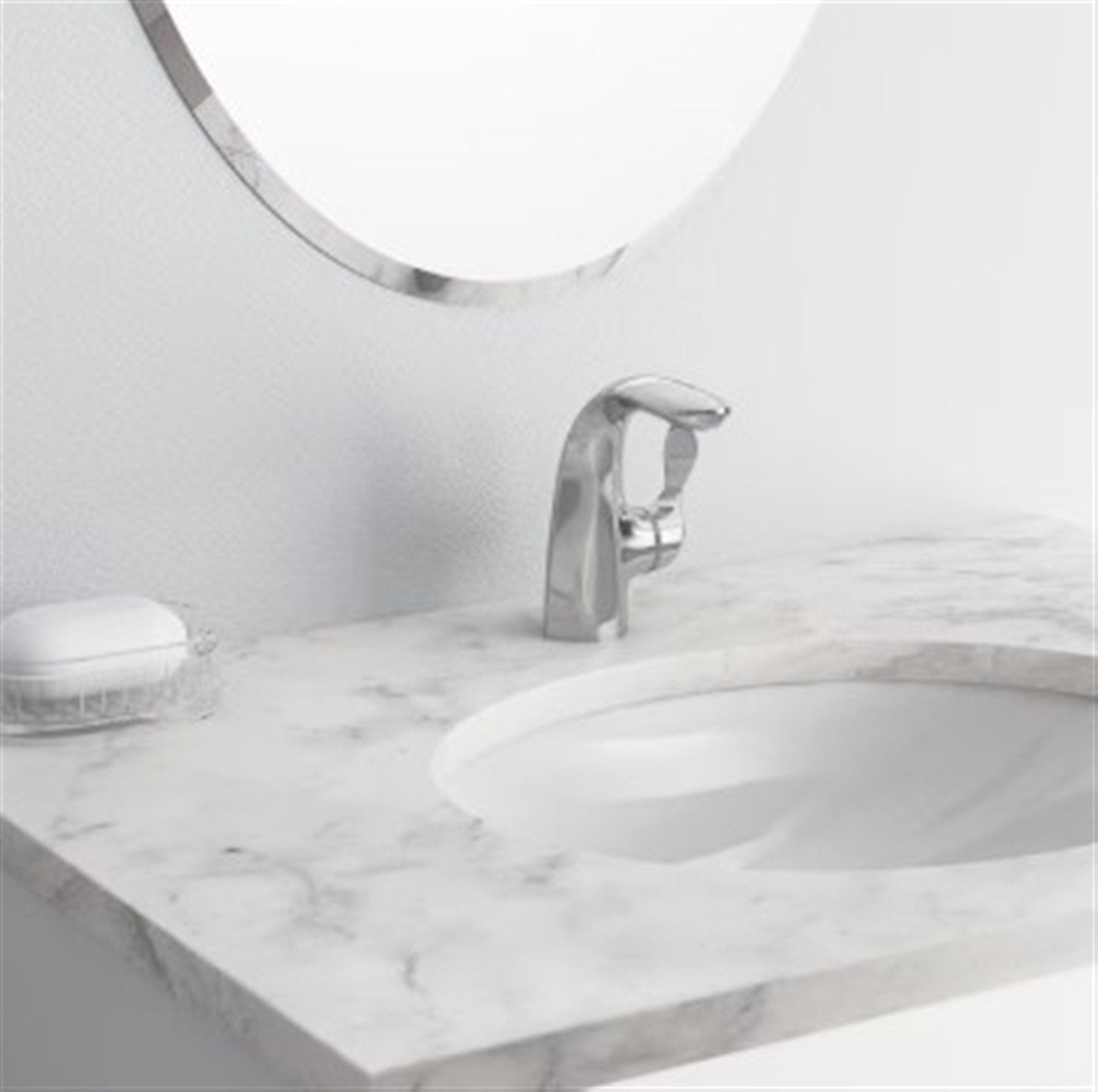 Refinia celebrates the beauty and fluidity of organic forms while offering smart functionality. This bathroom sink faucet exemplifies Refinia's sophisticated style with its graceful spout and unique side-mount handle.