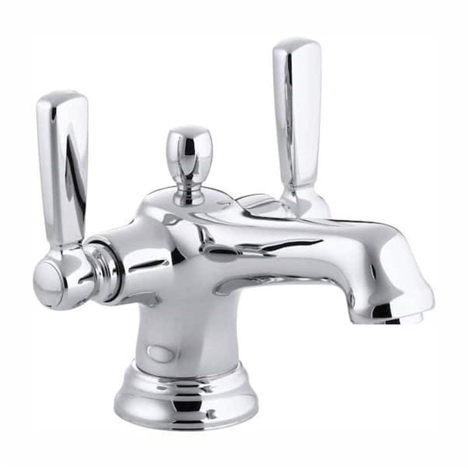 Inspired by early 1900s American design, Bancroft faucets combine a nostalgic aesthetic with solid brass construction to achieve universal appeal and reliable performance for today's bathroom. This mono block lavatory faucet with escutcheon and metal lever handles embodies a traditional elegance that complements the Bancroft Suite of products. Flexible supplies enable a fast and easy installation. Due to WaterSense regulations in the state of New York, please confirm your shipping zip code is not restricted from use of items which do not meet WaterSense qualifitions, For single-hole installation or 4 in. centers with escutcheon, KOHLER ceramic disk valves exceed industry longevity standards two times for a lifetime of durable performance, Solid brass construction for durability and reliability, KOHLER finishes resist corrosion and tarnishing, exceeding industry durability standards over 2 times, Flexible supply lines, Completes Bancroft design solution with KOHLER fixtures and accessories, Low-flow aerator option available (please see latest price book), Flow rate range: 1.5 - 1.2