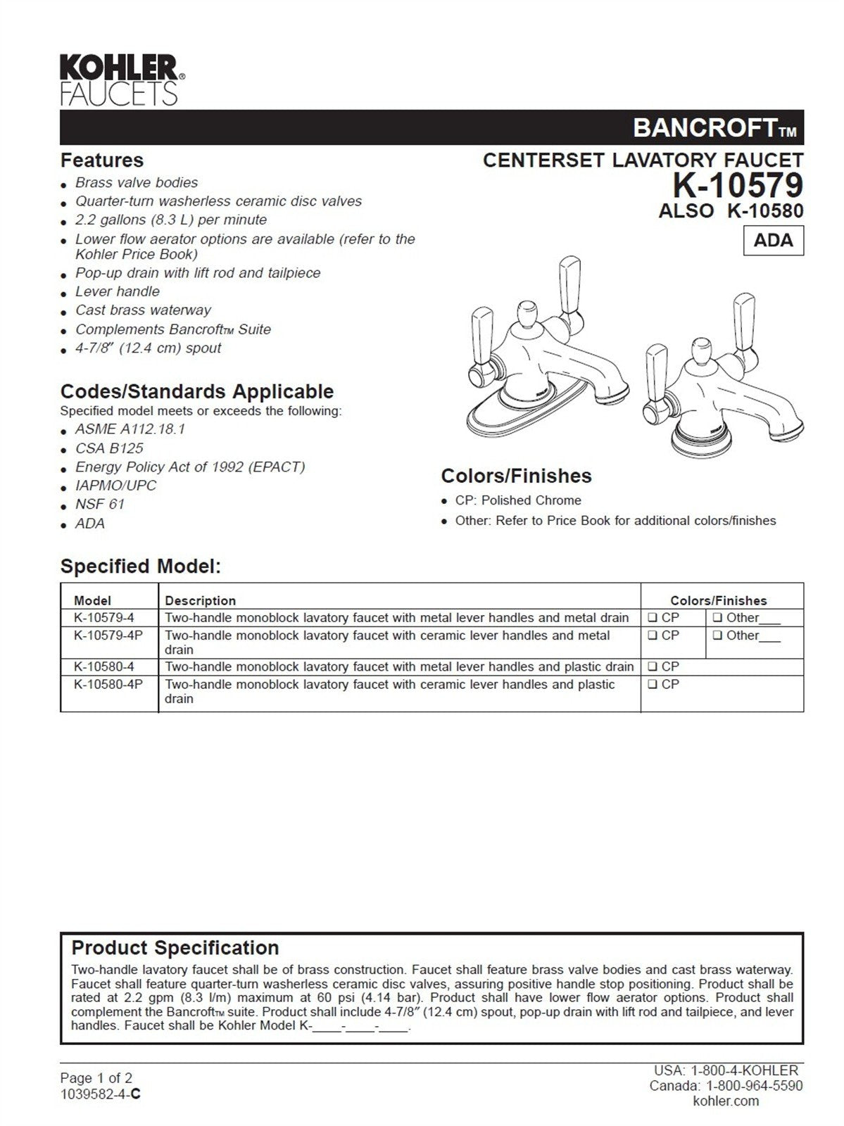 - Coordinates with Bancroft faucets, accessories, and showering components to complete your bathroom