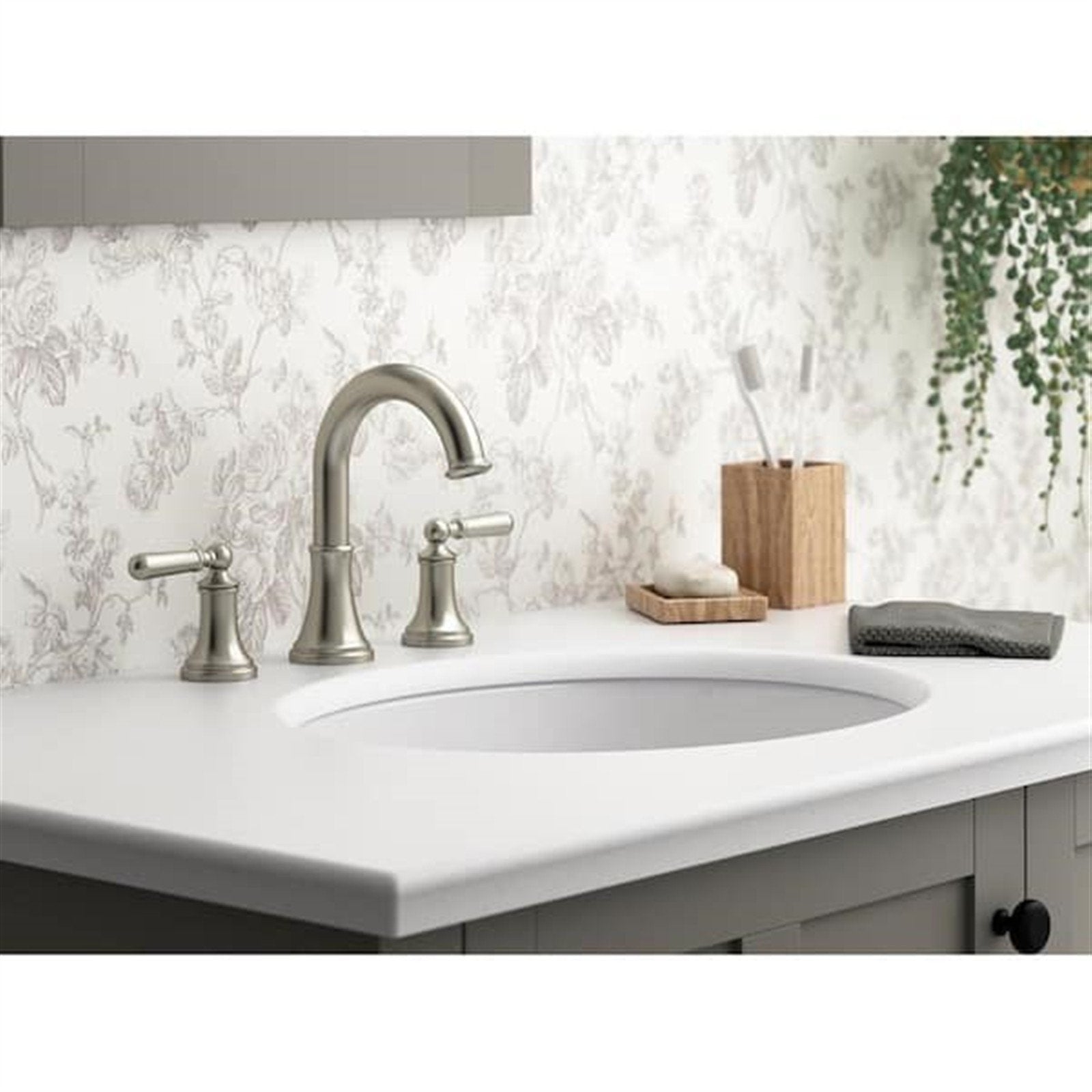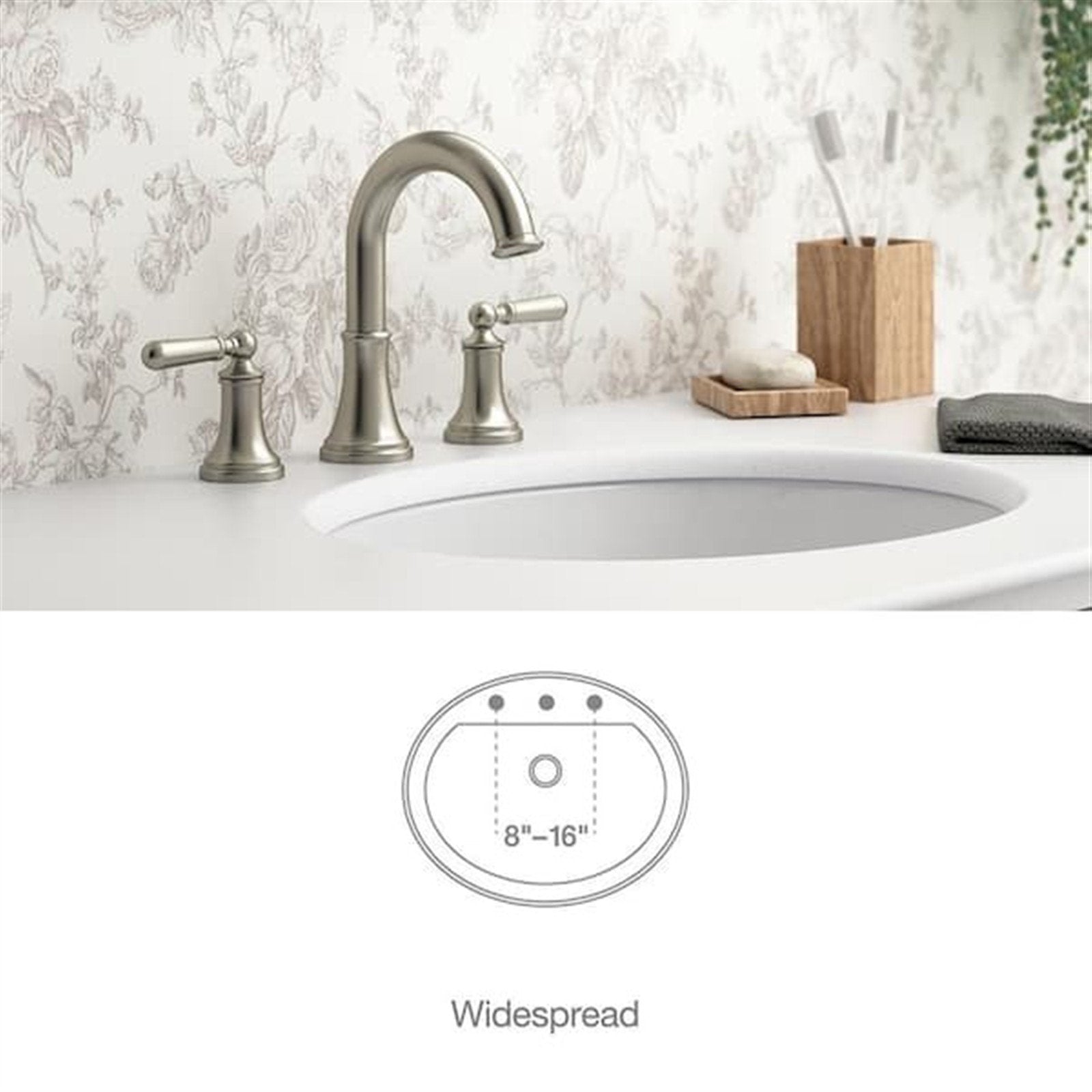 Inspired by classic design, Capilano reflects vintage styling through decorative flairs and spherical detailing. The two lever handles offer separate control of hot and cold water. It comes with a lifetime limited warranty. KOHLER ceramic disc valves exceed industry longevity standards, ensuring durable performance for life, 1.2 GPM (4.5 l minimum) maximum flow rate, Box includes: assembled faucet, clicker drain, Premium material construction for durability and reliability, KOHLER finishes featuring ScratchShield technology with stand even the toughest daily use, For 8 in. - 16 in. (203 - 406 mm) centers, Widespread, Handles pre-assembled on valves to simplify installation, Simplified faucet assembly; mounting hardware requires no special tools, WaterSense