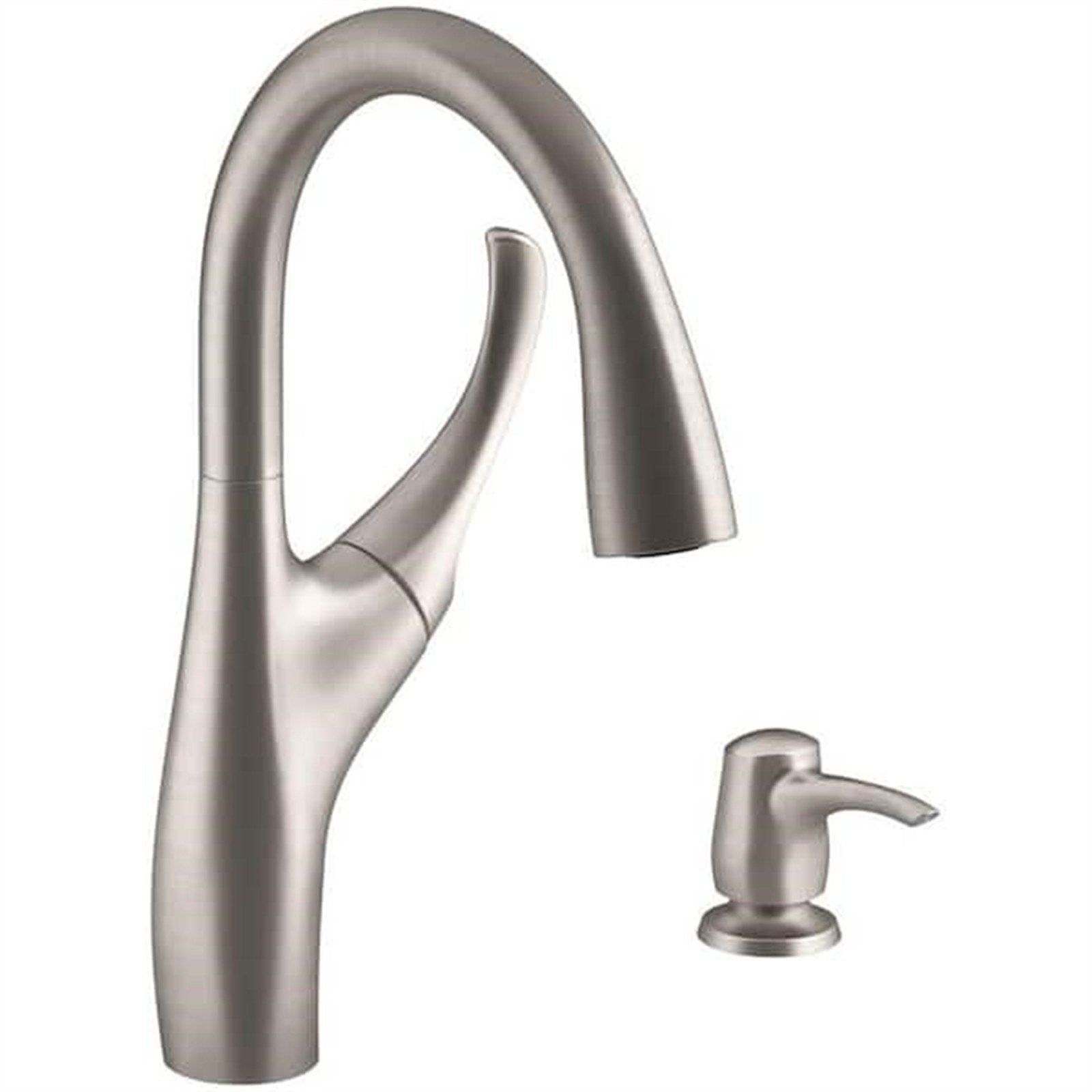 Kohler Mazz 1 Hole Pull Down Kitchen Faucet in Vibrant Stainless K-R72511-SD-VS