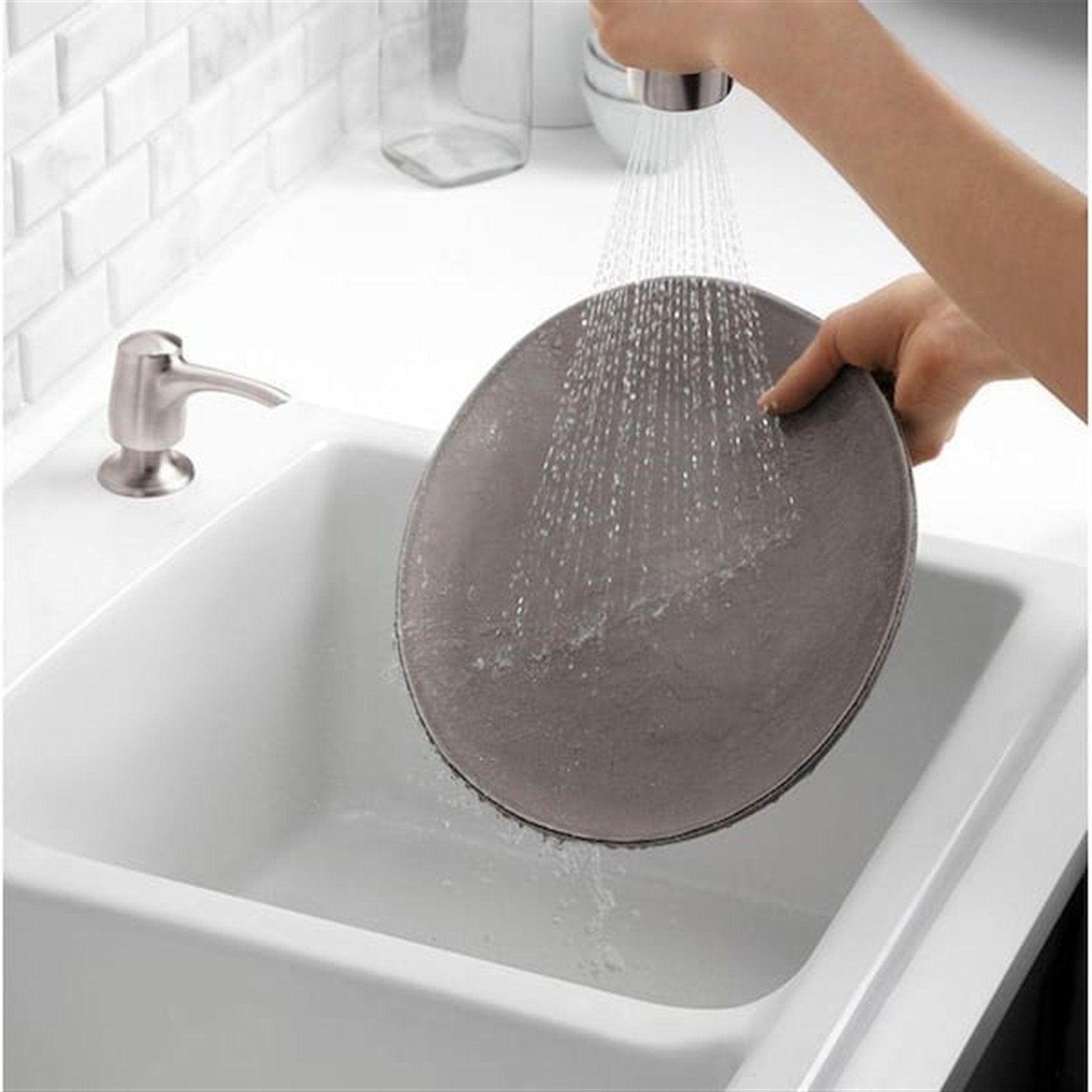 - Sweep® spray features specially angled nozzles that form a wide, powerful blade of water to sweep your dishes and sink clean