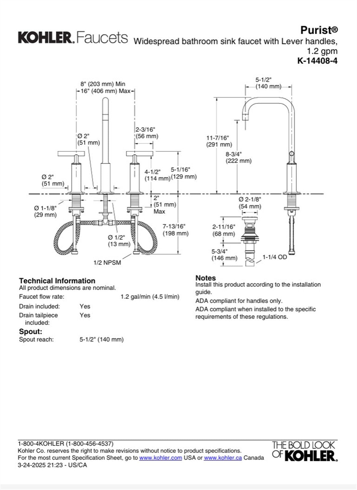 - 5-1/2" (140 mm) spout reach