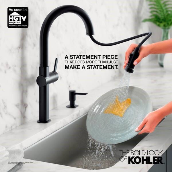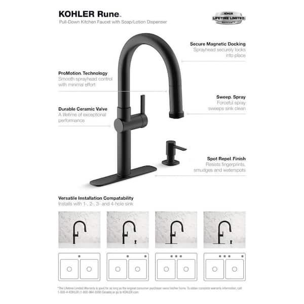 KOHLER Rune Kitchen Faucet 1-Handle Pull-Down Matte Black K-R22153-SD-BL