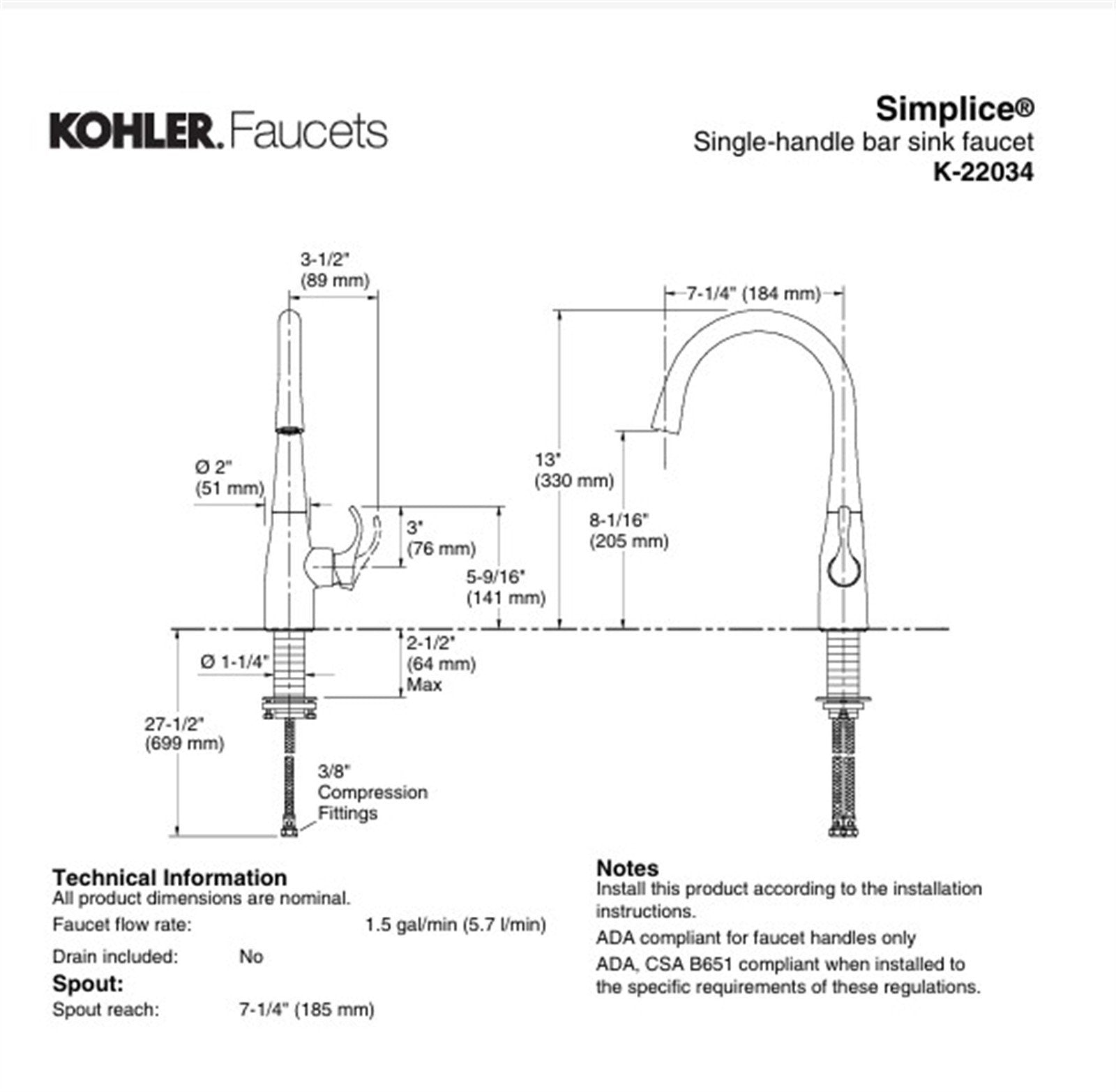 Kohler Simplice Single-Handle Bar Sink Faucet Vibrant Stainless K-22034-VS ✅
