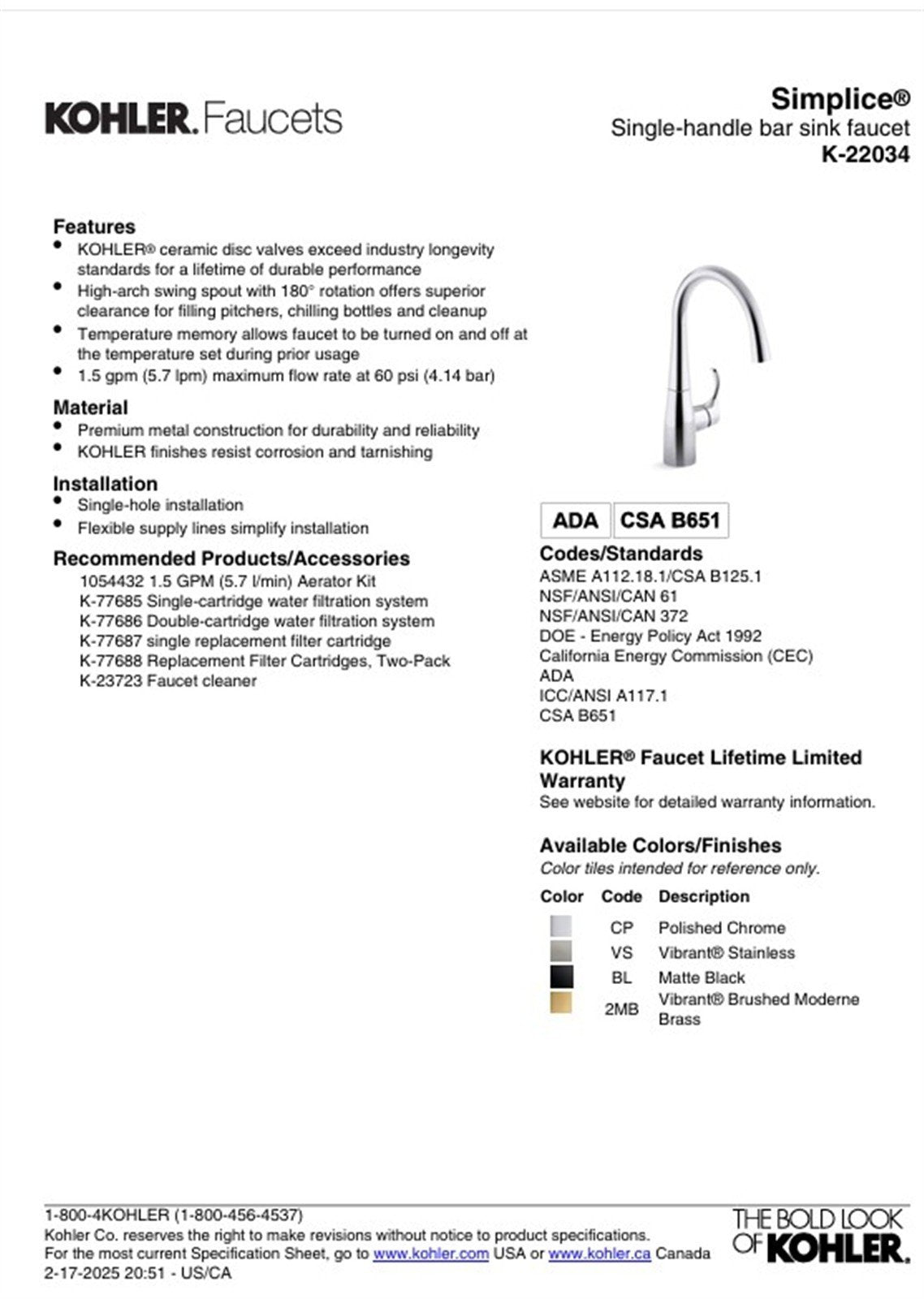 Ideal as a secondary sink for entertaining, food prep, and cleanup, this Simplice bar sink faucet combines an elegant, universal design with exceptional ergonomics and functionality. Coordinate this faucet with a Simplice primary kitchen sink faucet.