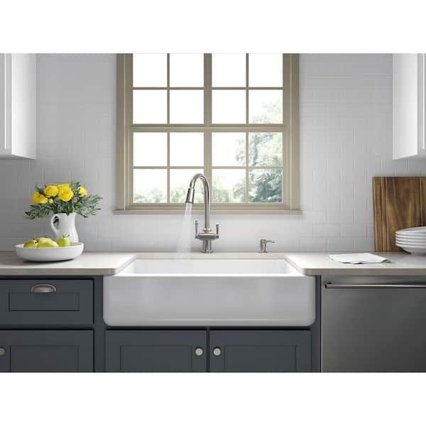 - High-arch spout offers vertical clearance for tall cookware and pitchers