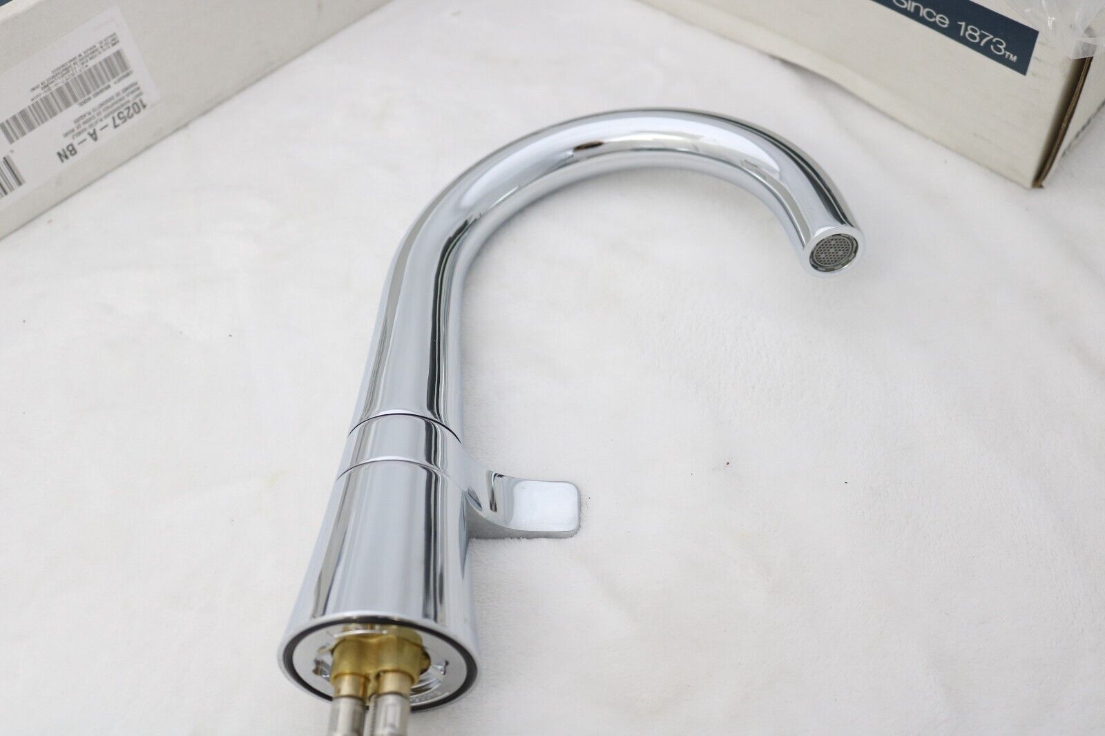 - Single fin-shaped handle is easy to grasp and makes adjusting water temperature easy